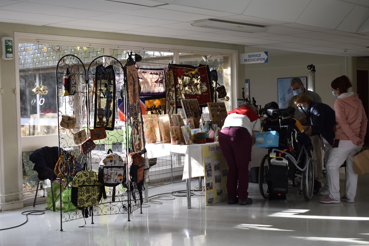 Nous avons pu y trouver : des fleurs séchées, des bijoux, de la décoration, des produits corporels, des articles en provenance du Burkina Faso et aussi faire des pré-commandes de chocolats. Ces stands étaient tenus par les exposants eux-mêmes ainsi que par des bénévoles de L’Hospitalet.